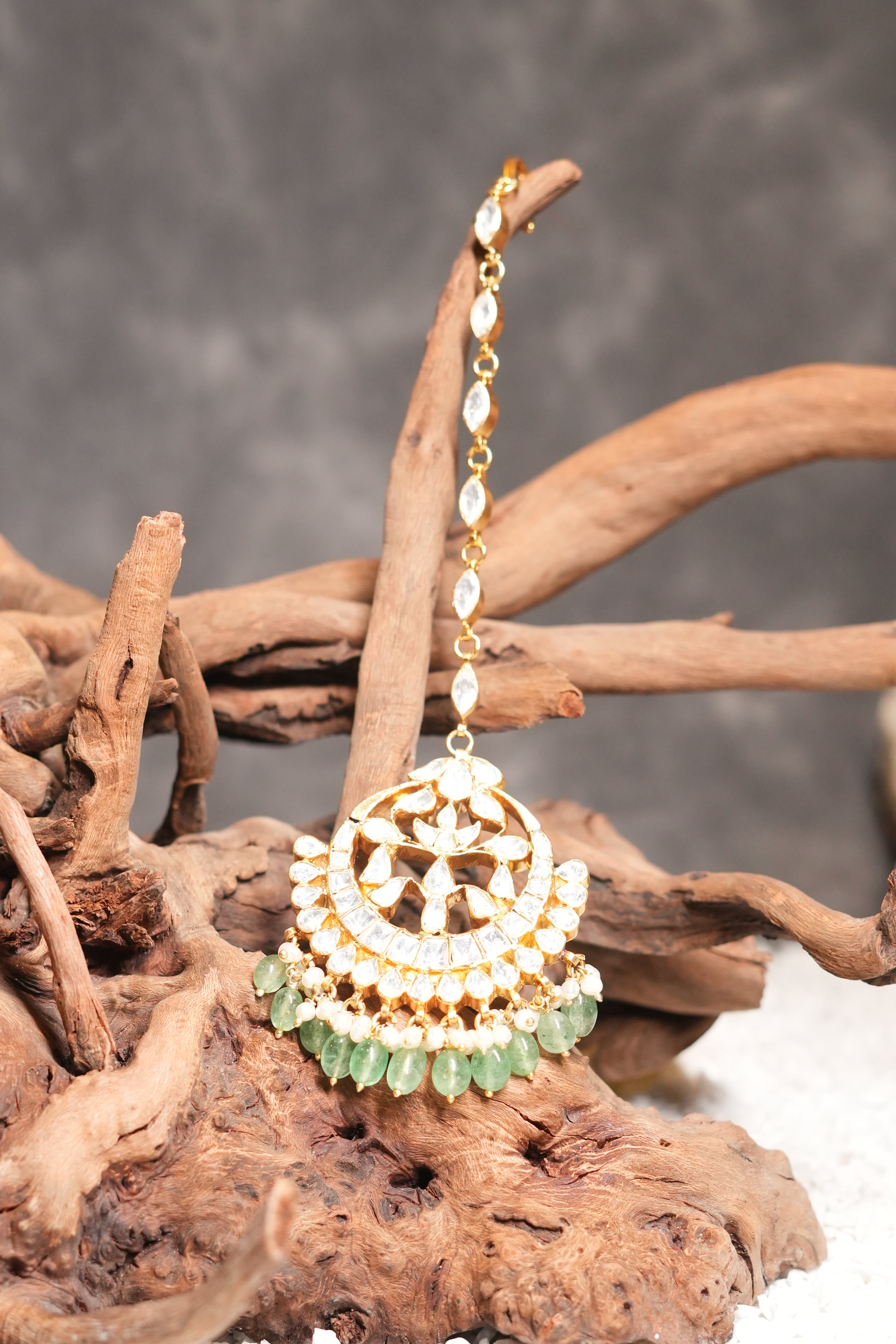 Stones Used:- Moissanite Polki, Green Semi-Precious Stones