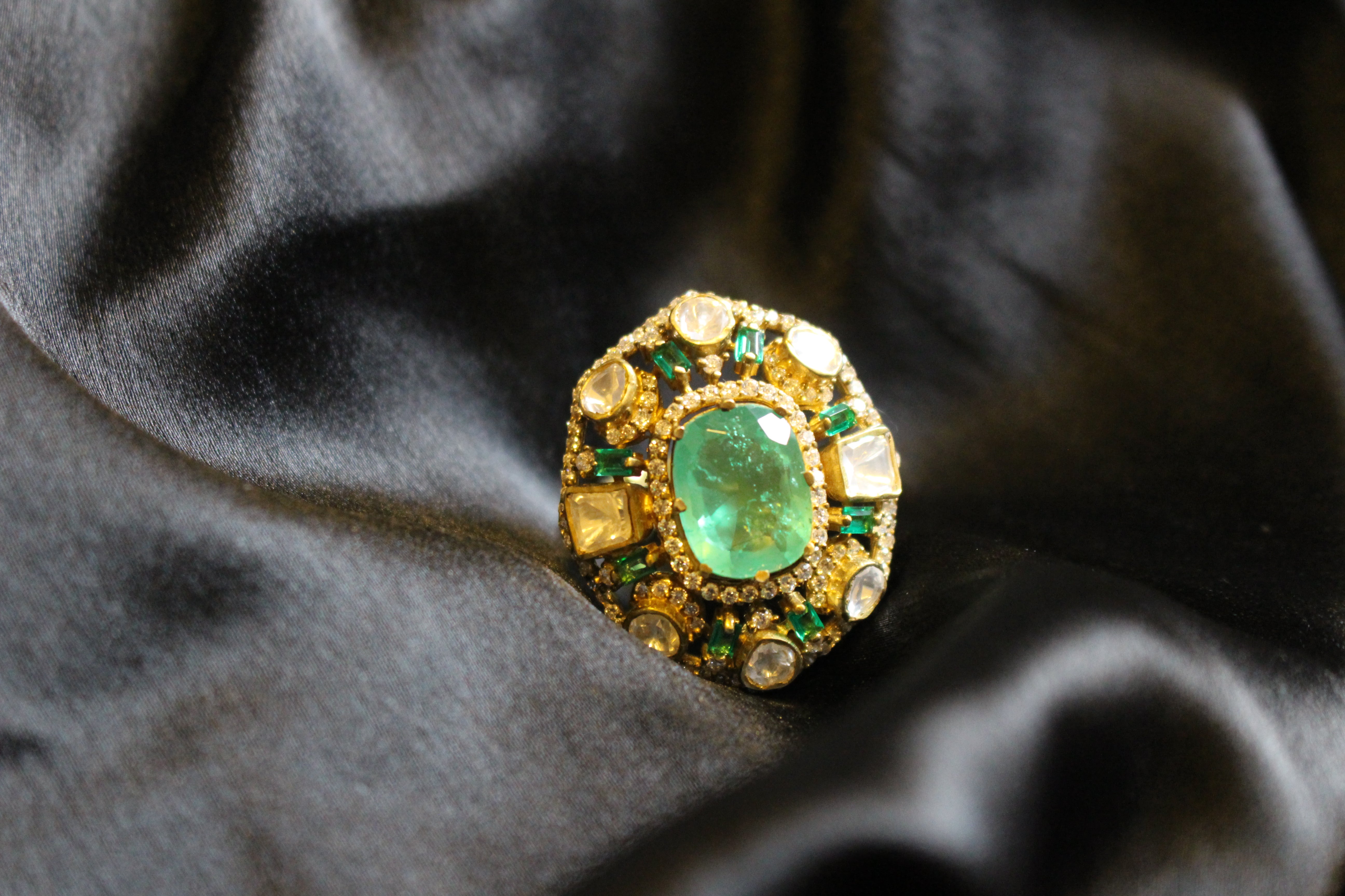 Introducing Nawab- the epitome of elegance and sophistication. Crafted with mossanite polki stones and set in 925 sterling silver, this ring exudes a royal charm fit for a queen. Whether it's for a regal event or a special collection, Nawab guarantees to make you feel like royalty.