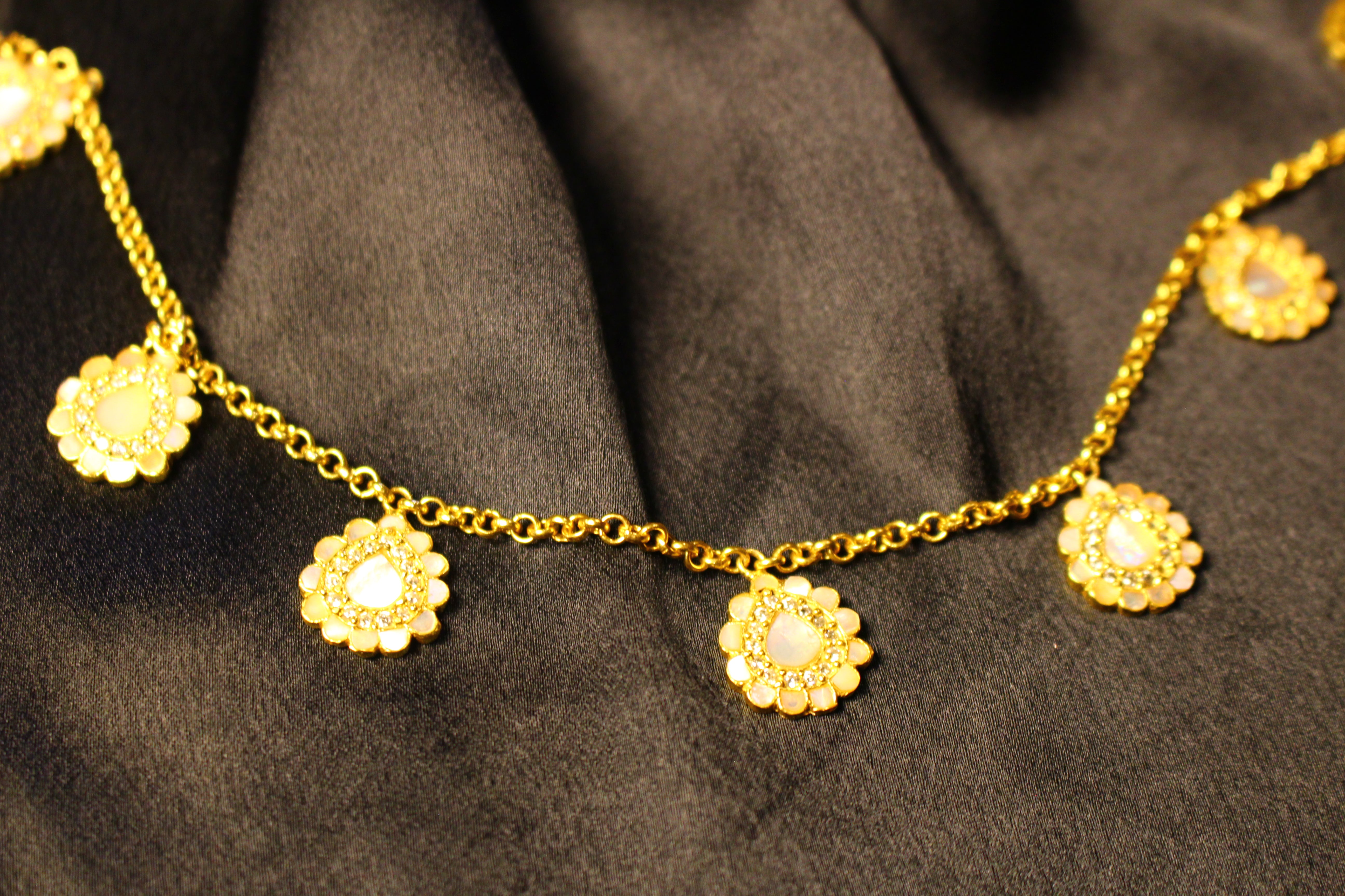 Introducing Ruhie, a regal and royal neckpiece. Made with Mossanite polki set in 925 sterling silver, this festive and premium collection exudes elegance and luxury. Add a touch of sophistication to your attire with Ruhie.