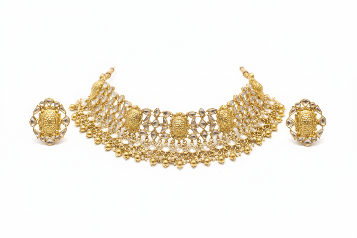 The KUNDAN JADAU collection with its intricate yet dainty look, will leave you feeling simply resplendent, mesmerising people with its subtle beauty. Statement-worthy in the most chic and elegant way, this piece is your one-stop solution to escape the blues.