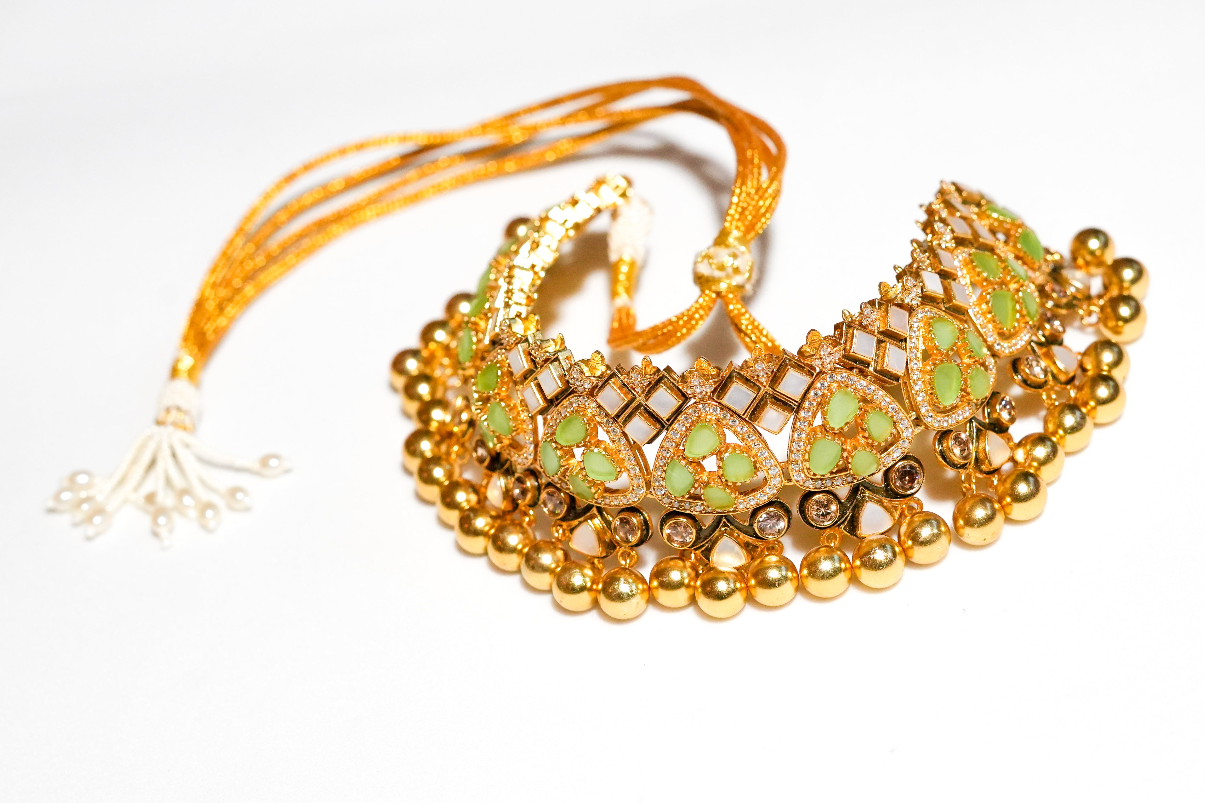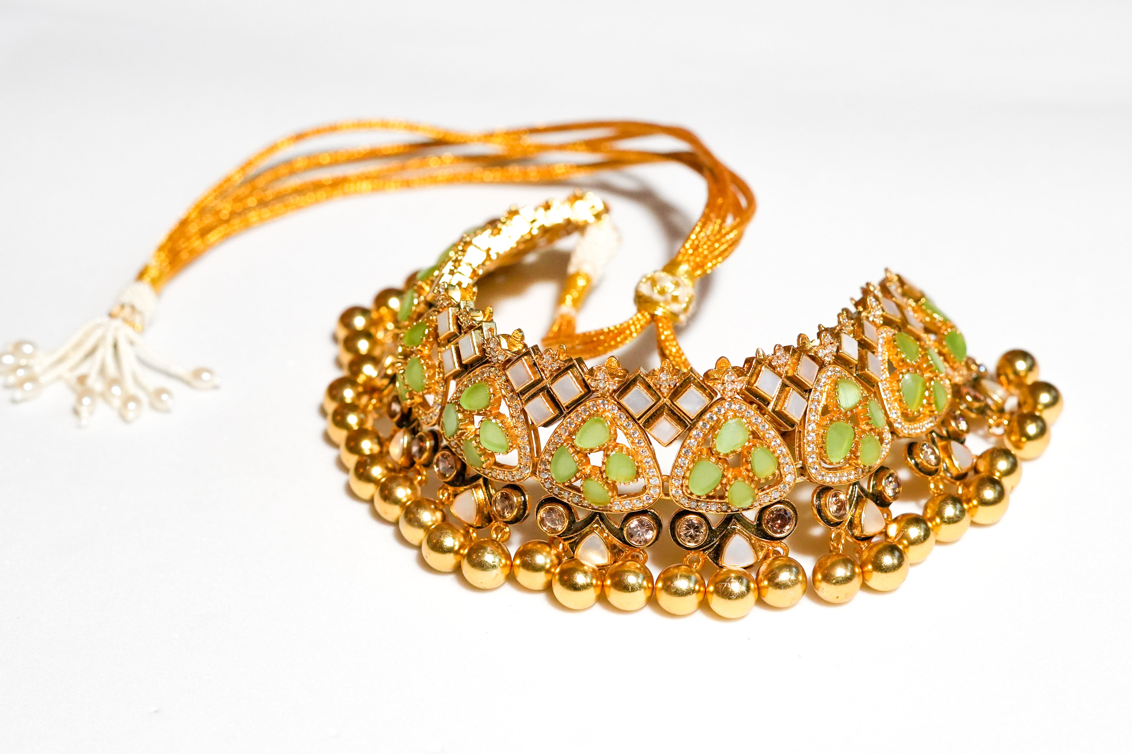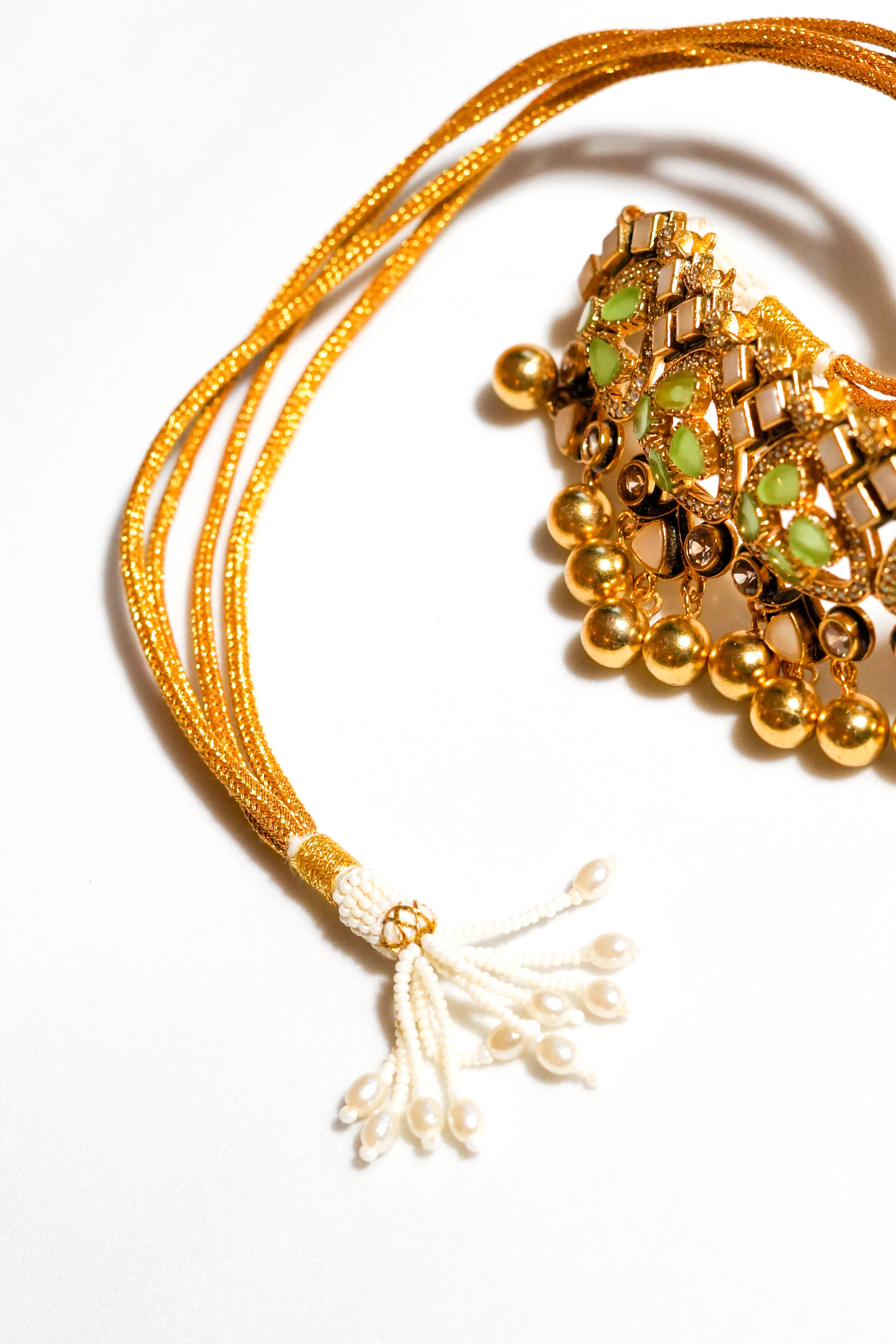 The KUNDAN JADAU collection with its intricate yet dainty look, will leave you feeling simply resplendent, mesmerising people with its subtle beauty. Statement-worthy in the most chic and elegant way, this piece is your one-stop solution to escape the blues.Plating:- 22k Gold Plating / 2 MicronFinish Type:- Gold ShinyStones Used:-...