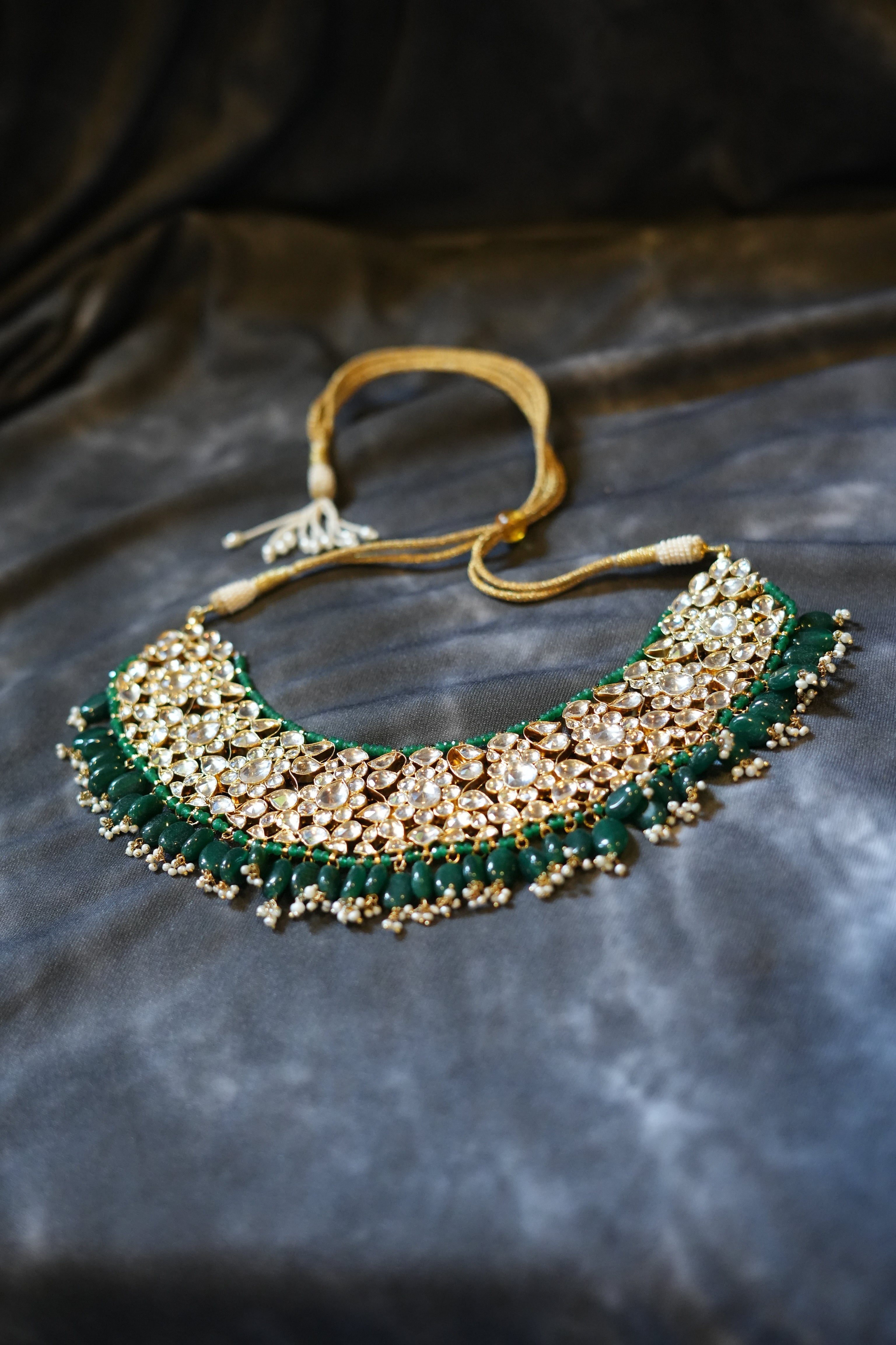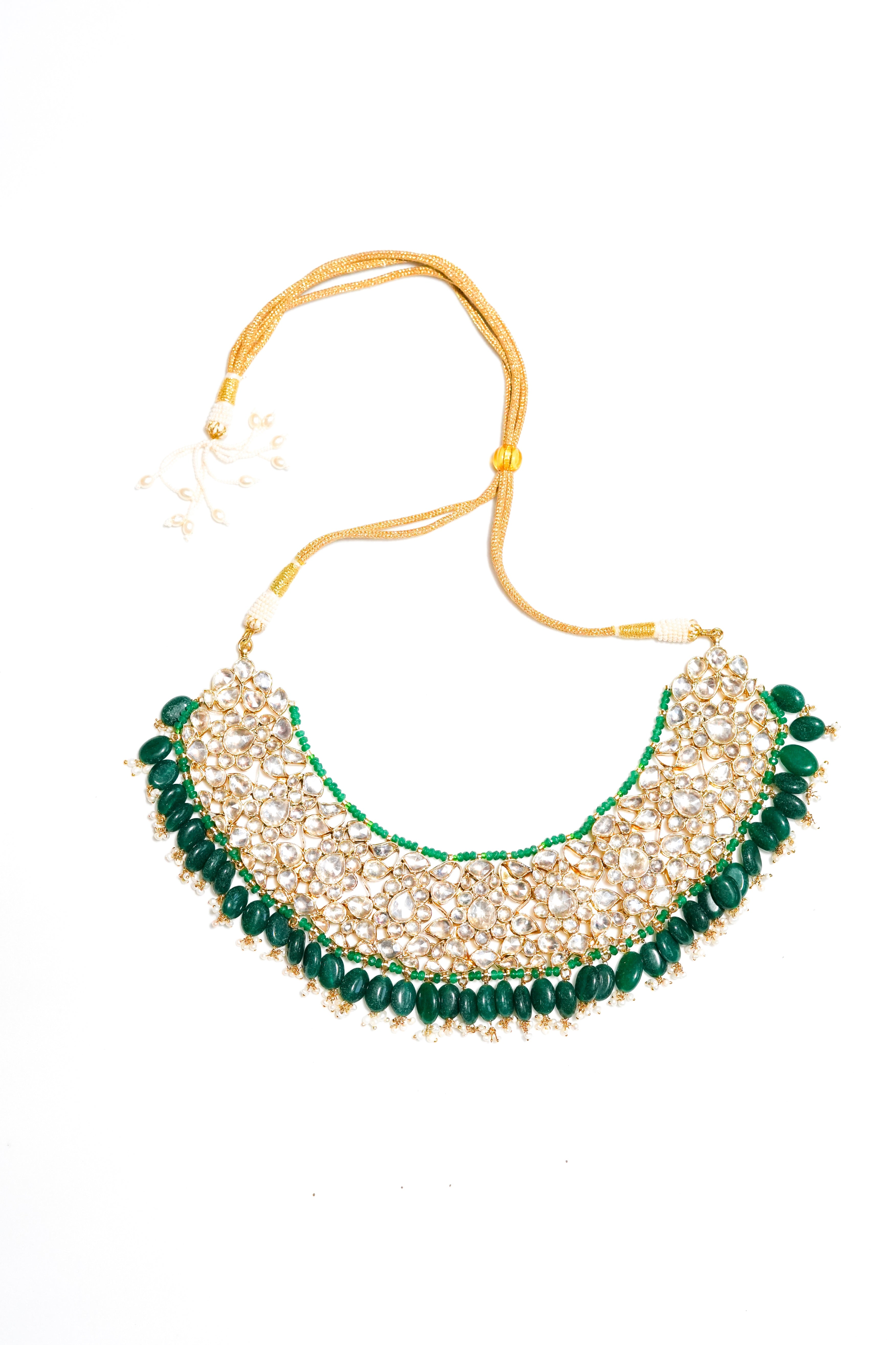 The KUNDAN JADAU collection with its intricate yet dainty look, will leave you feeling simply resplendent, mesmerising people with its subtle beauty. Statement-worthy in the most chic and elegant way, this piece is your one-stop solution to escape the blues.Plating:- 22k Gold Plating / 2 MicronFinish Type:- Gold ShinyStones Used:-...