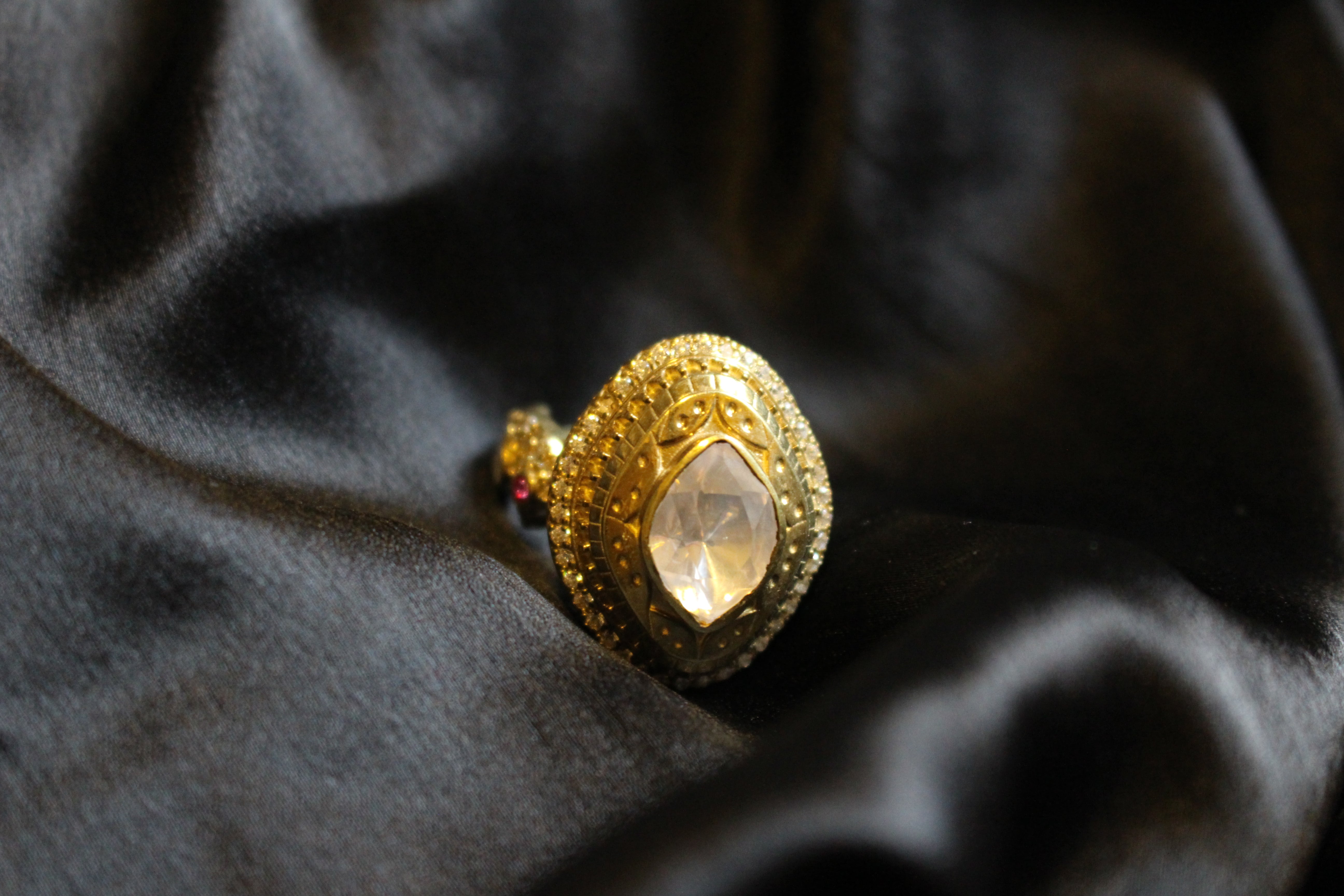 Introducing Nusrat- the epitome of elegance and sophistication. Crafted with mossanite polki stones and set in 925 sterling silver, this ring exudes a royal charm fit for a queen. Whether it's for a regal event or a special collection, Nusrat guarantees to make you feel like royalty.
